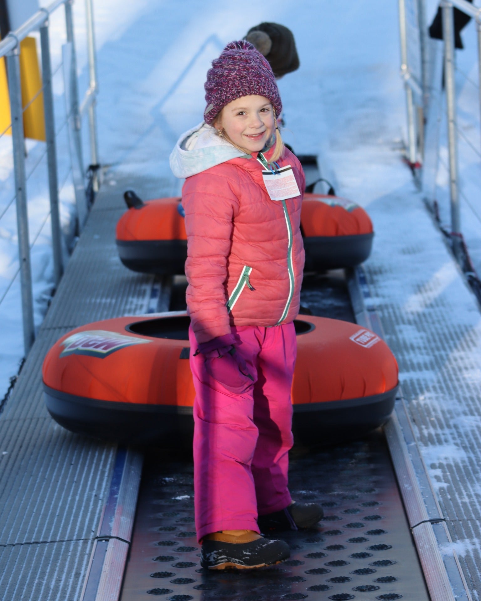 A dedicated tubing area with wide, safe lanes and a gentle slope downwards.